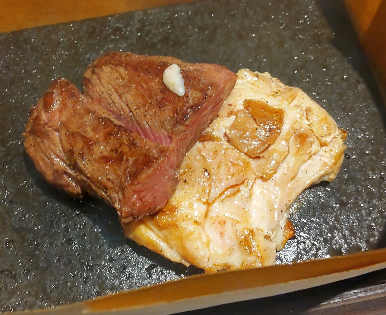 1000円ステーキ 幕張「ワンダーステーキ」 食事DSC_0319 2023.01.27 急遽ステーキが食べたくなりましたが、安く済ませたかったので、1000円ステーキのお店「ワンダーステーキ」に行きました。 入店するとすぐにレジがあって、注文。あとは基本的にセルフでした。 熱せられた溶岩にステーキが乗って熱々でした。 すごく良い肉というものではありませんけど、安くステーキを食べるのには最適です。
